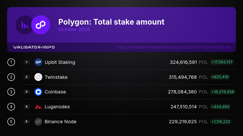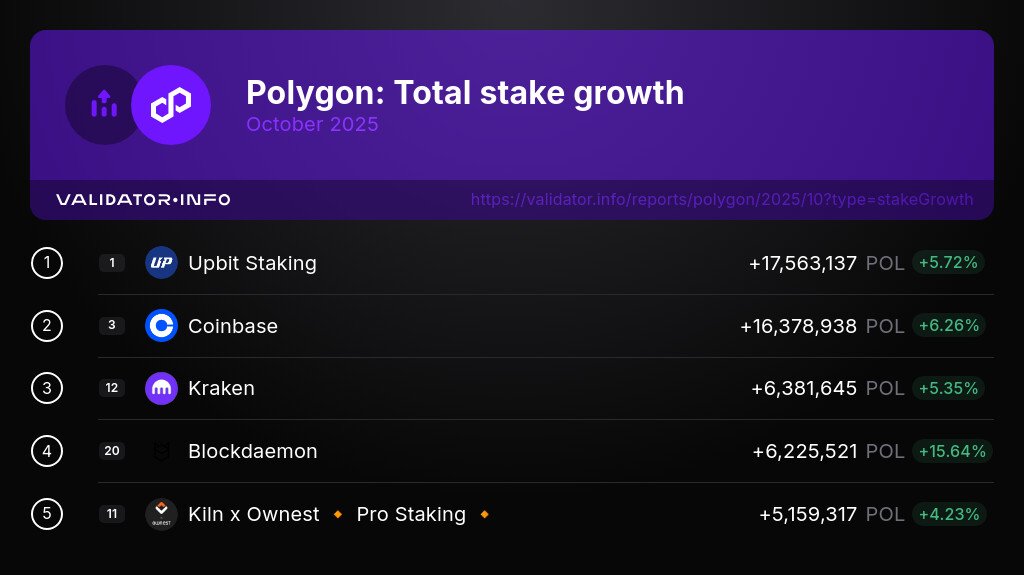 We’re thrilled to announce the top 5 Polygon validators who experienced the biggest stake increase in the past month! Congratulations to them: