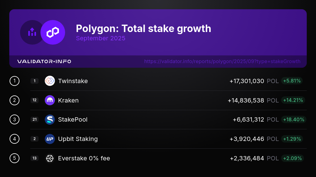 We’re thrilled to announce the top 5 Polygon validators who experienced the biggest stake increase in the past month! Congratulations to them:
